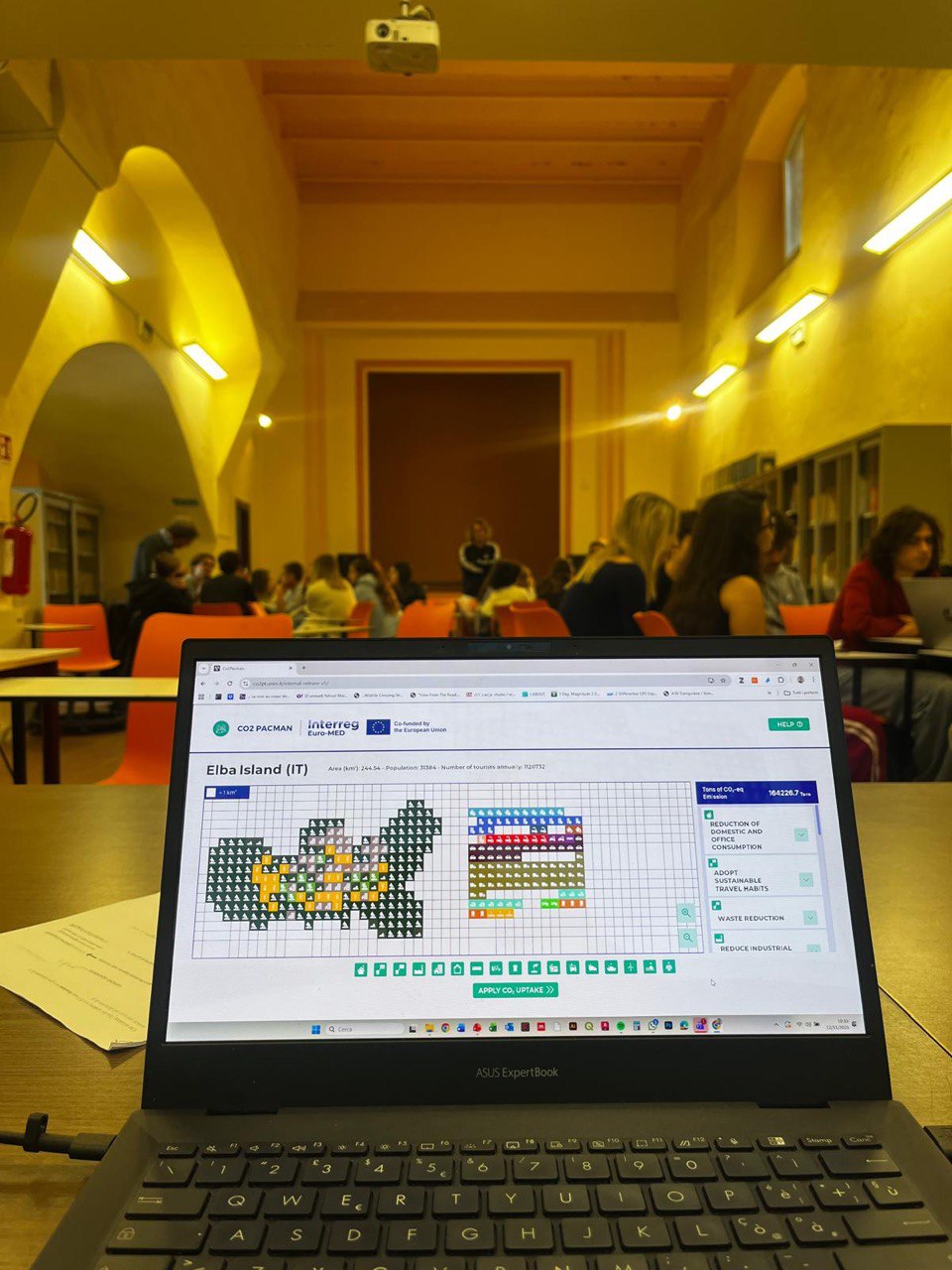 On November 12, 2025, a CO2 PACMAN Youth Think Tank was held in Portoferraio, Elba Island, engaging high school students of the “Raffaello Foresi” Institute in a hands-on laboratory with researchers from the University of Siena and the University of Florence. Through interactive sessions and CO2 PACMAN tool simulations, students explored how landscapes, local communities, and natural resource management contribute to successful decarbonisation pathways.