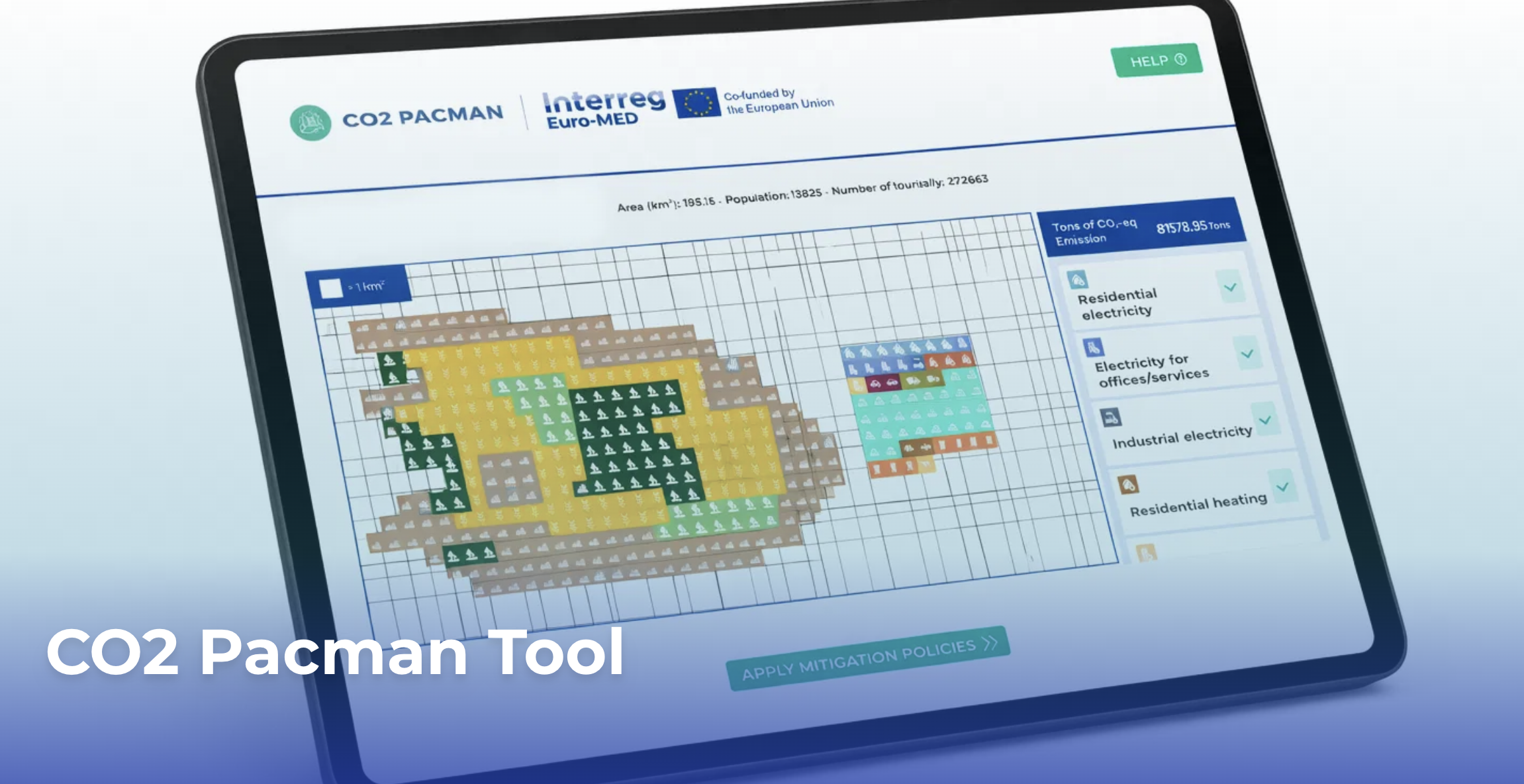 The CO₂ PACMAN Tool is a digital decision-making support platform that helps make the impacts of different decarbonization policies clear, comparable, and accessible. It allows local administrations, technical experts, and citizens to explore emission-reduction pathways through interactive visualizations. By integrating emissions data with local renewable energy potential, the tool supports participatory decision-makingand the definition of realistic pathways toward climate neutrality.